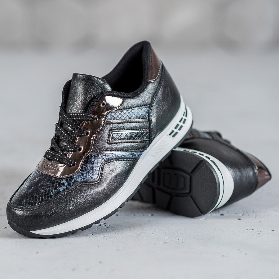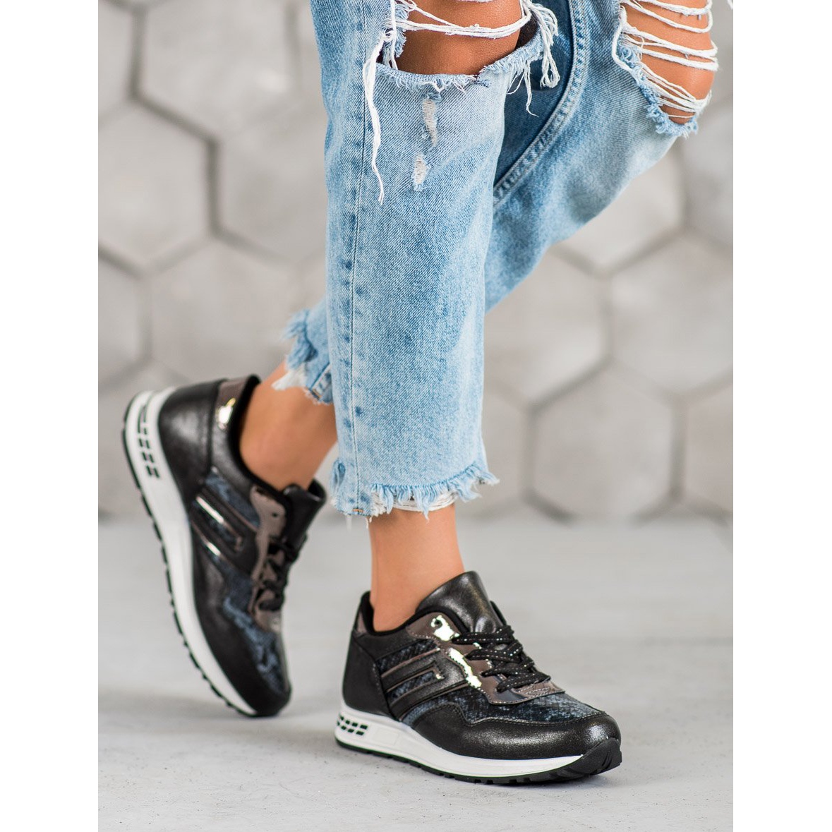 Os tênis pretos Snake Print da marca SHELOVET são a escolha perfeita para mulheres que querem aliar moda com conforto. Estes calçados esportivos baixos se distinguem pela elegante cor preta e padrão animal, que lhes conferem um caráter único. Os elementos dourados são um destaque adicional que chama a atenção e adiciona um acabamento elegante a qualquer estilo.