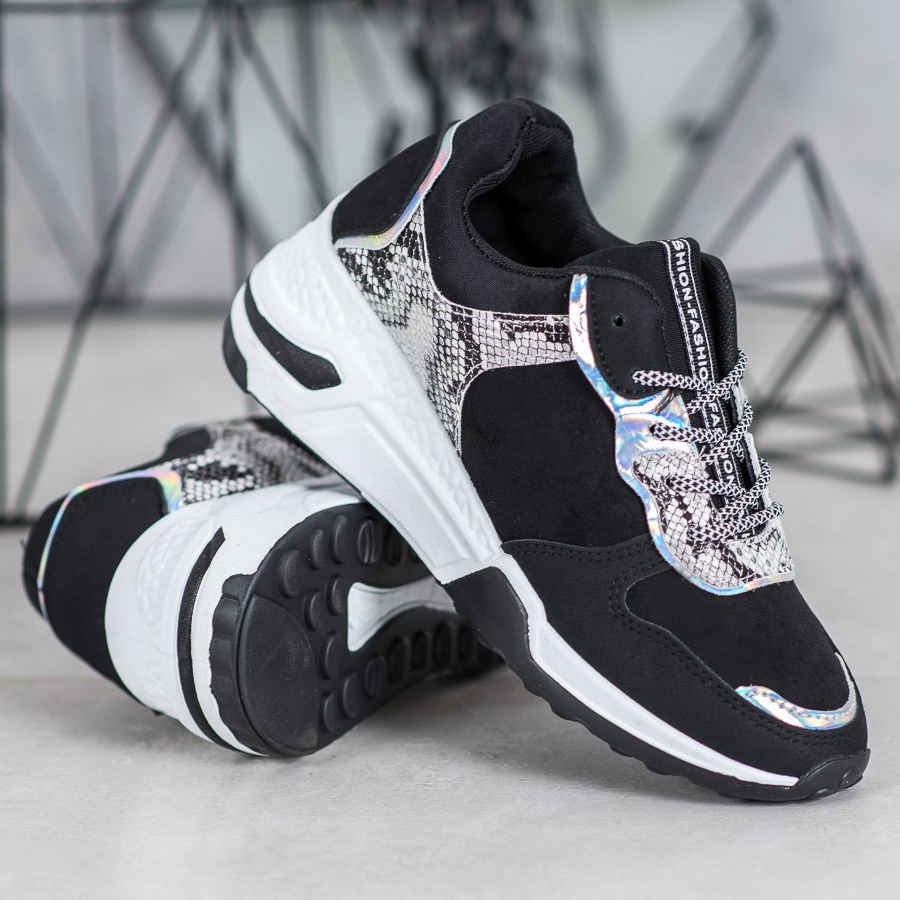 Os tênis SHELOVET Snake Print na cor preta são a opção ideal para mulheres que desejam aliar conforto a um look fashion. Esses calçados esportivos exclusivos combinam perfeitamente com as tendências atuais, chamando a atenção com um atraente padrão animal que imita a pele de cobra.