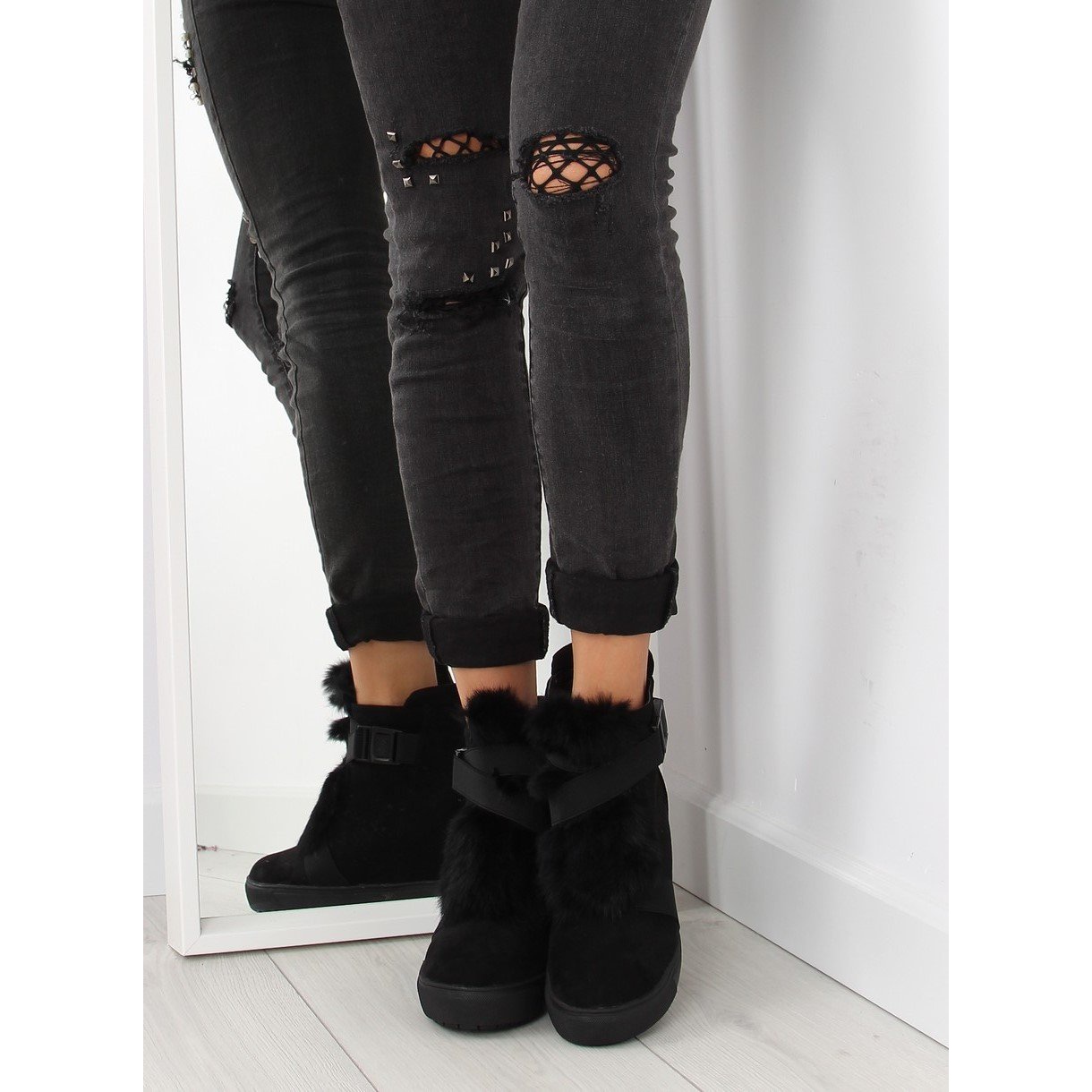Detalhes: Tênis com pelo preto 3123 preto