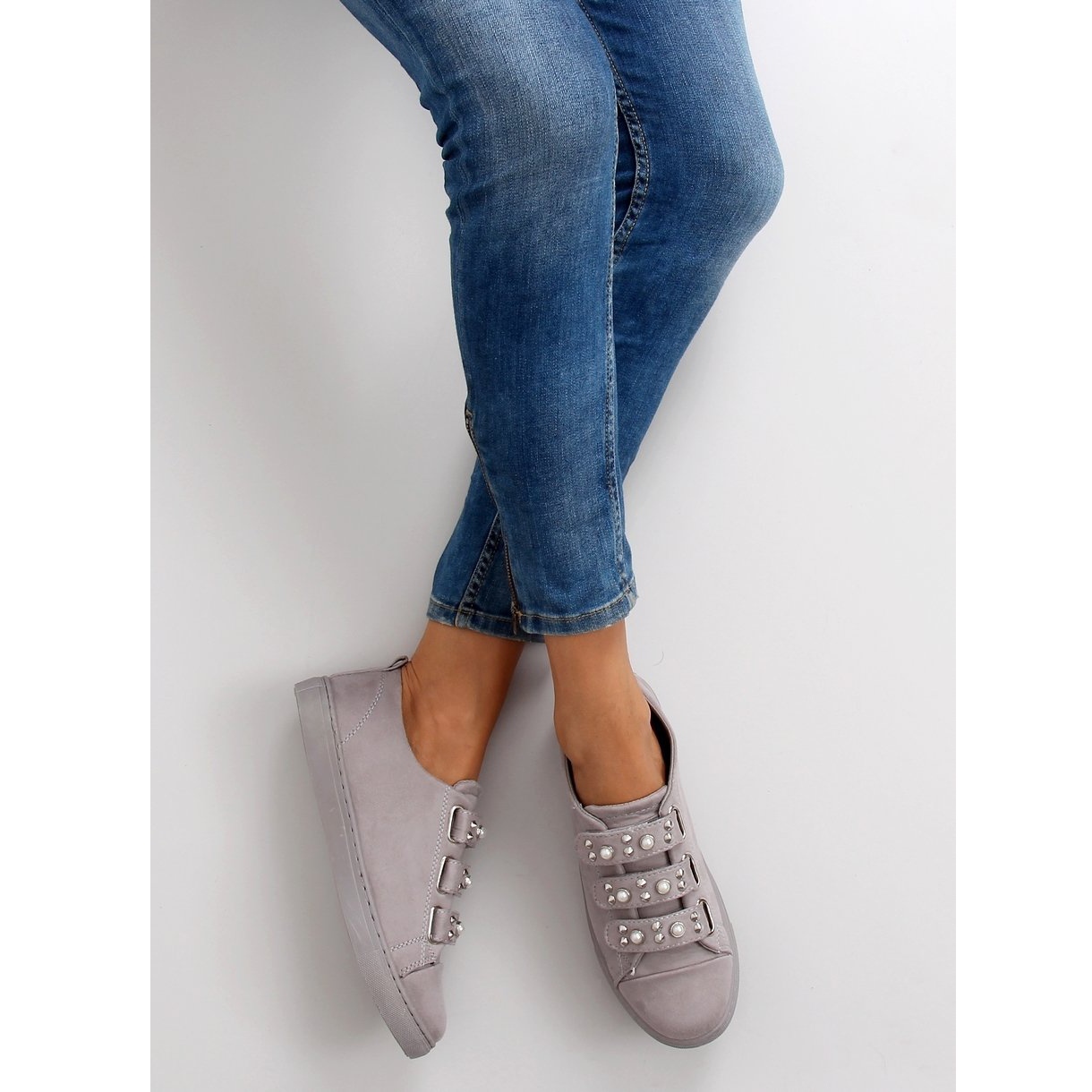 Os elegantes tênis femininos L1078 na cor cinza são a escolha perfeita para todas as mulheres elegantes. Fabricados em camurça ecológica espessa e de alta qualidade, combinam elegância com conforto no dia a dia. Estes ténis baixos distinguem-se não só pelo conforto de uso, mas também pelo original fecho de velcro, decorado com subtis pérolas.
