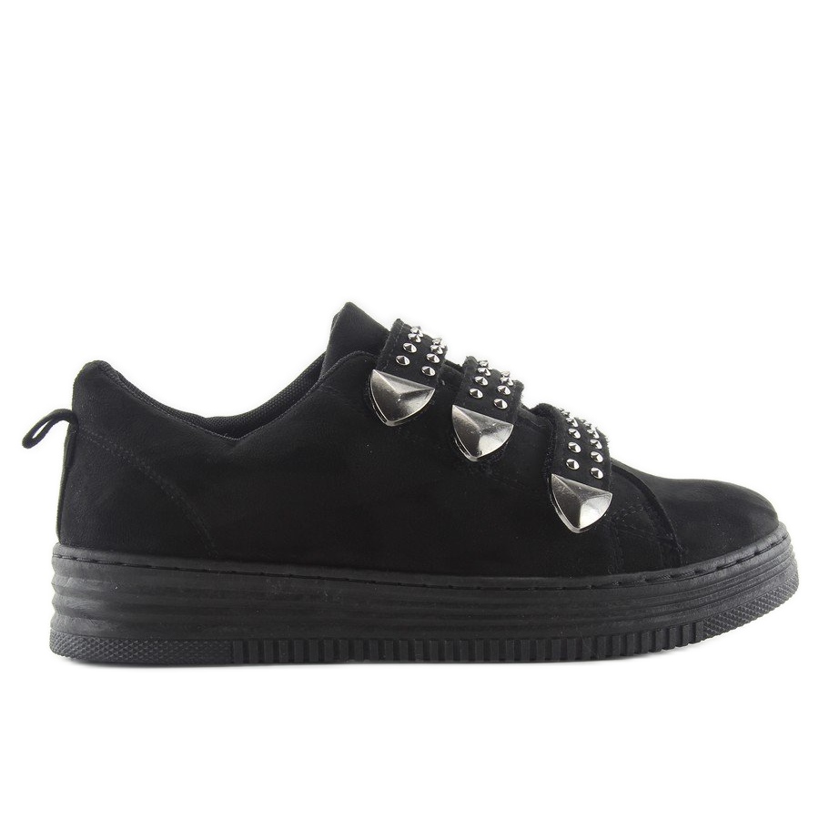 O tênis 16-582 preto com tachas é a escolha perfeita para mulheres que valorizam moda e conforto no dia a dia. Confeccionados em camurça ecológica, esses tênis pretos se destacam não só pelo design estiloso, mas também pela praticidade. Fixados com tiras de velcro, permitem colocar e retirar de forma rápida e cómoda.
