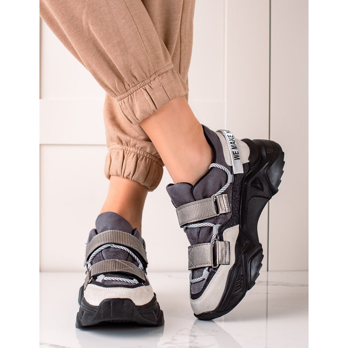 Detalhes: TRENDI Tênis Com Velcro Moda bege preto cinza