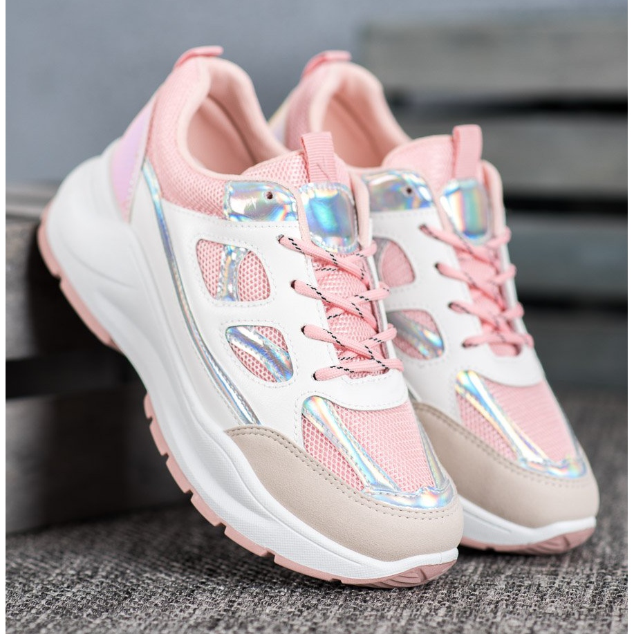 Detalhes: SHELOVET Tênis Confortáveis Com Malha branco rosa multicolorido