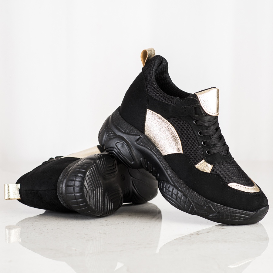SHELOVET SHELOVET Tênis Confortáveis PRETO e OURO dourado