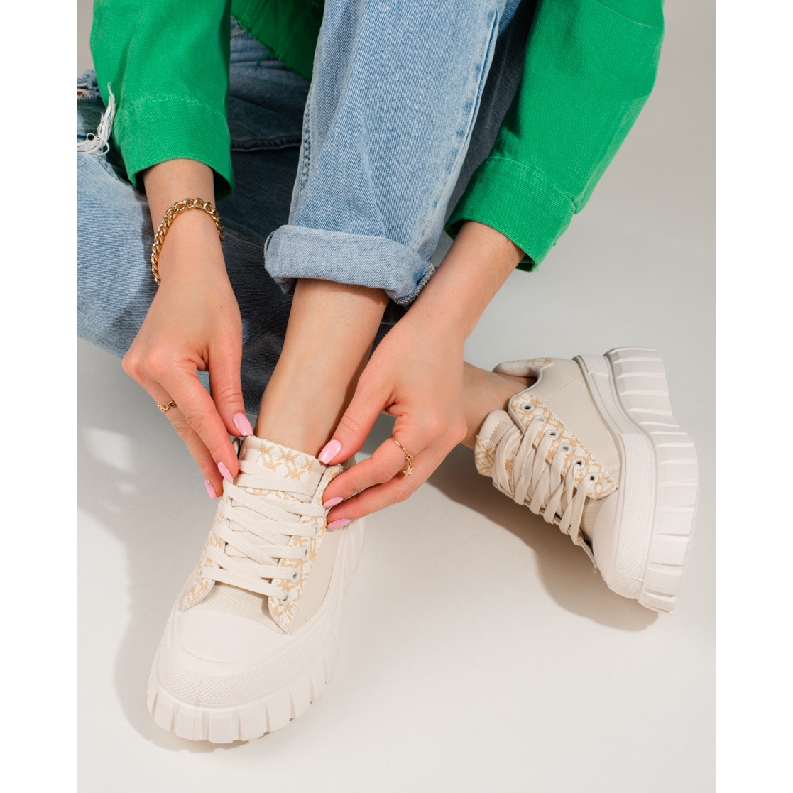 SHELOVET Tênis creme feminino em plataforma alta Shelovet bege