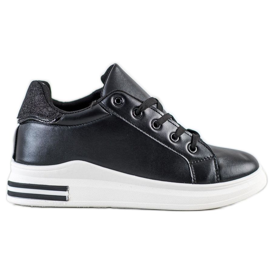Detalhes: Diamantique Tênis cunha com brilho preto
