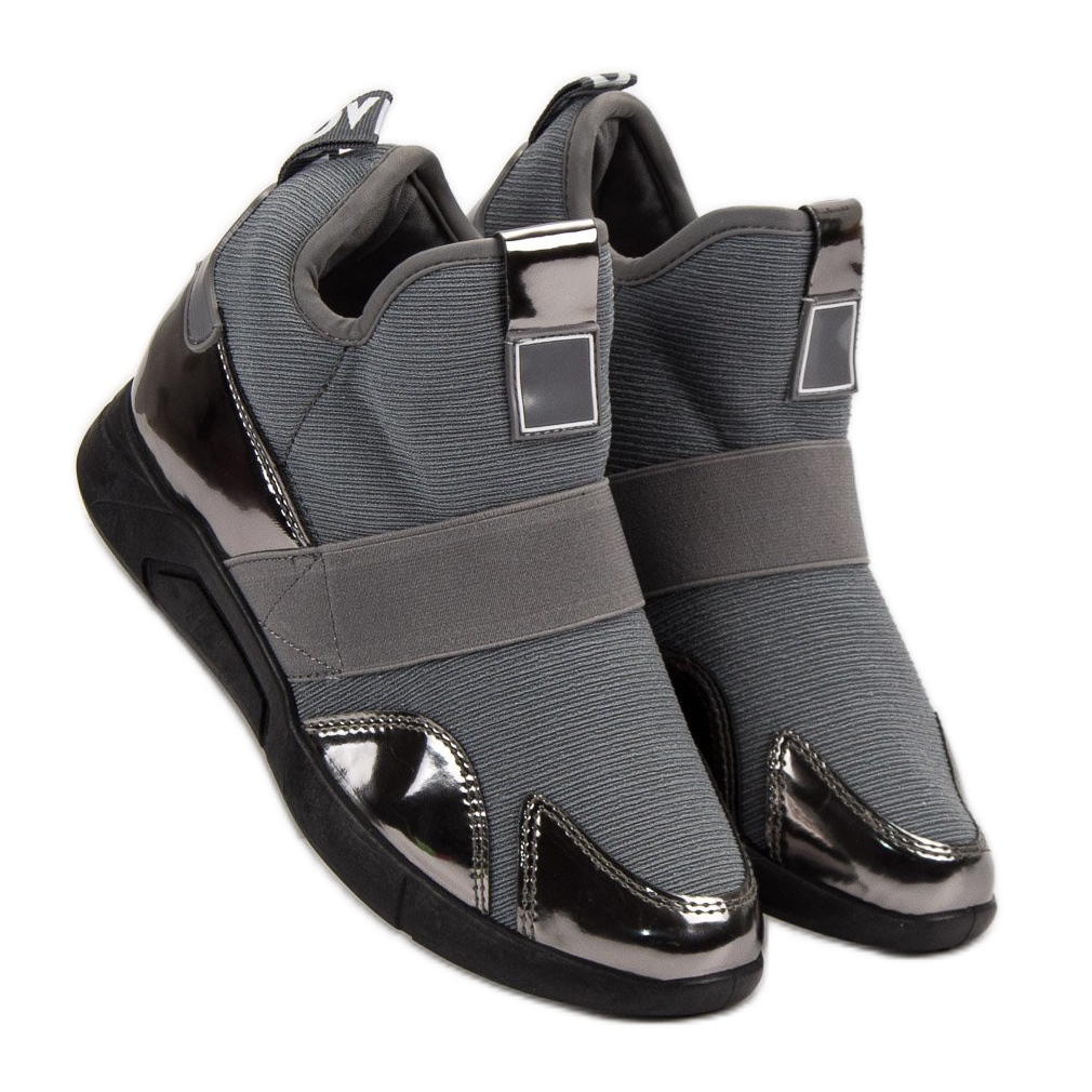 Descubra um modelo único que combina estilo esportivo com elegância - tênis de cunha na cor cinza. Estes sapatos originais foram criados para mulheres modernas que querem se sentir confortáveis e elegantes. Graças à altura da cunha que varia de 5 a 8 cm, você ganhará centímetros adicionais, o que aumentará a autoconfiança em qualquer situação.