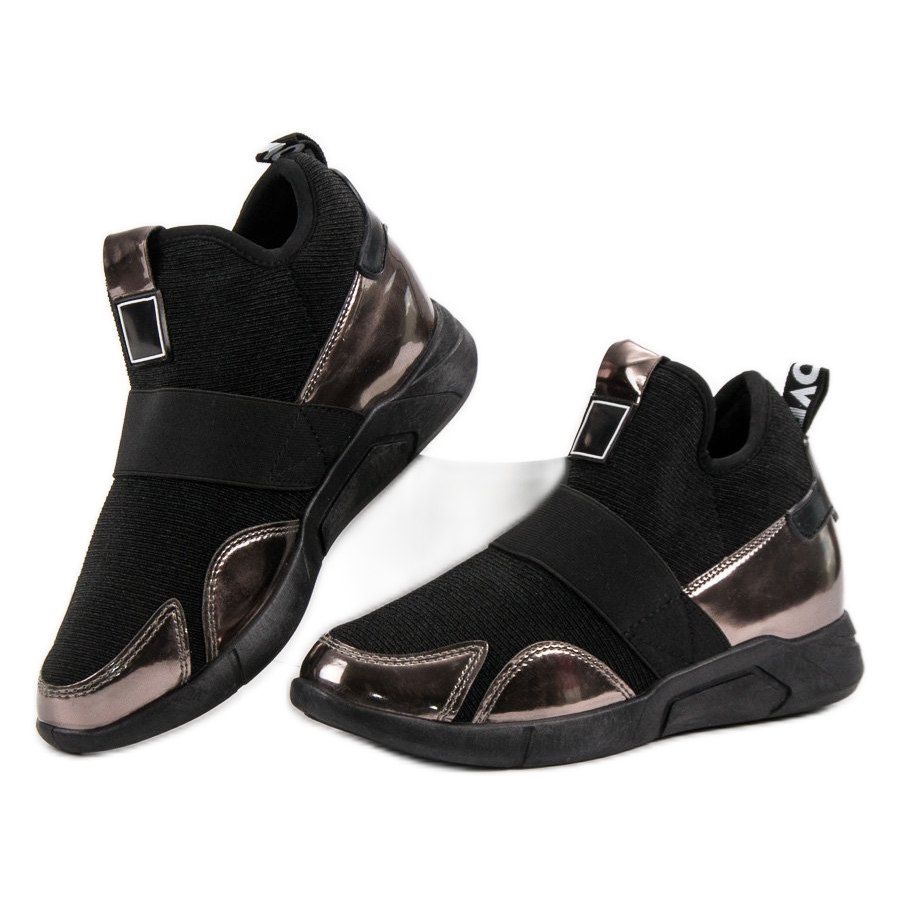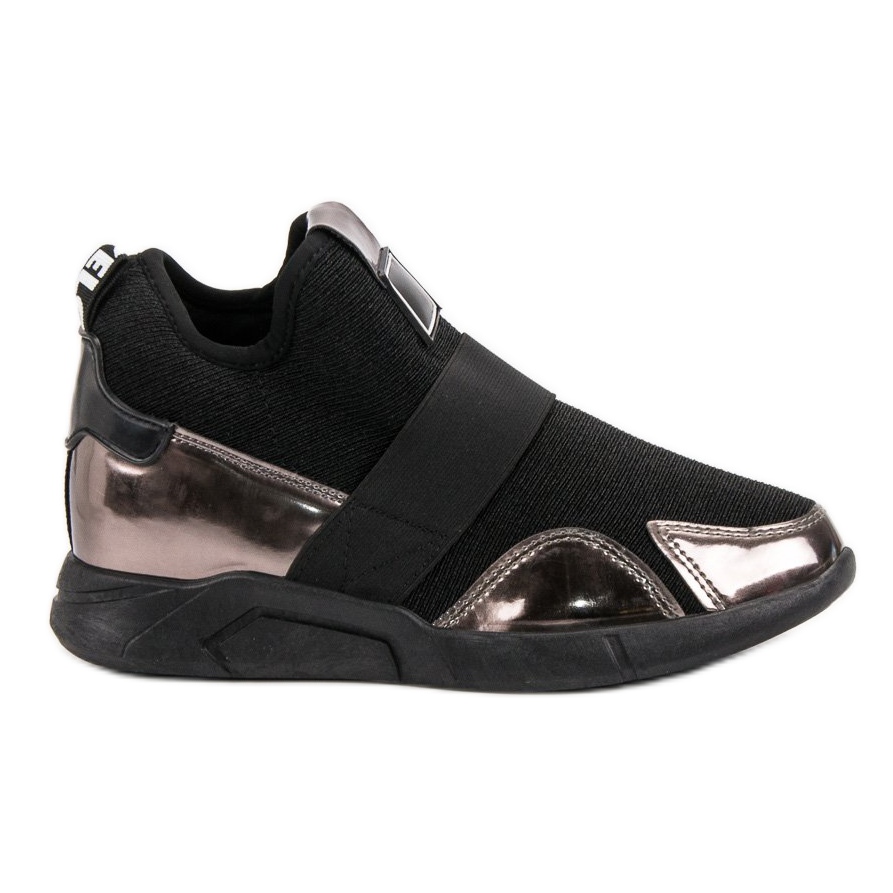 Feitos de materiais têxteis leves e couro ecológico envernizado, esses tênis ficam lindos em vários estilos - tanto casuais quanto esportivos. Graças a uma cunha oculta de 6 cm de altura e a uma plataforma de 2,5 cm, estes sapatos não só alongam opticamente as pernas, mas também garantem estabilidade e conforto de uso.