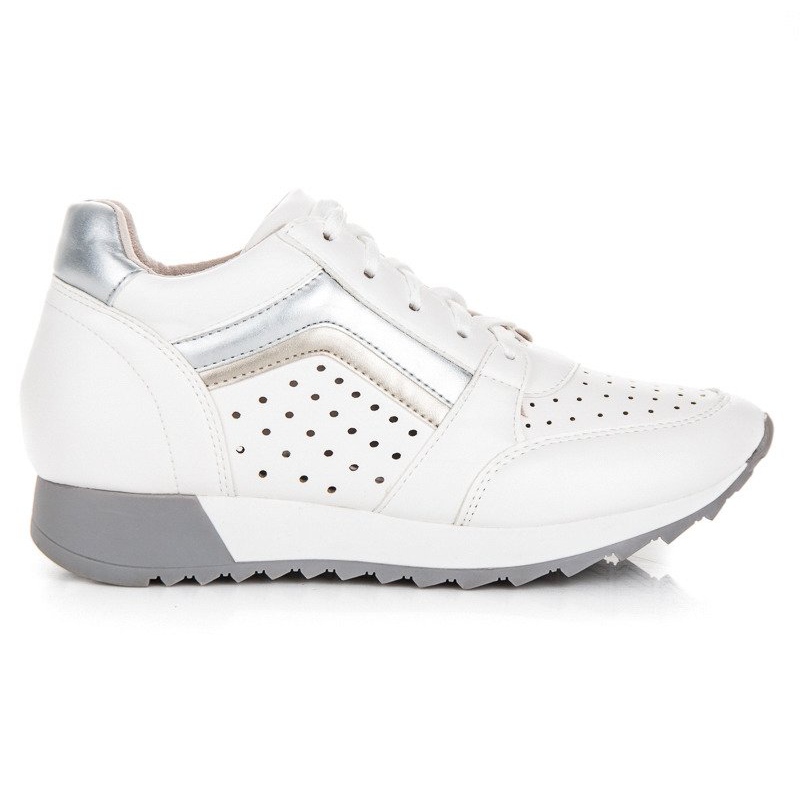 A plataforma de 3 cm de altura não só aumenta a altura, mas também alonga lindamente as pernas, o que as torna fenomenais. Graças à sola de borracha com banda de rodagem, os tênis são adequados tanto para passeios de primavera quanto para viagens de outono. O seu design extremamente universal faz com que se adaptem perfeitamente a vários estilos - do casual ao mais elegante.