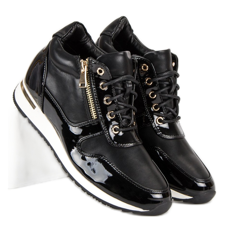 Descubra estilo e conforto únicos com os tênis J. Star pretos, que encantam com a combinação de couro ecológico fosco e envernizado. Estes tênis com cadarços são a escolha ideal para mulheres que valorizam a aparência moderna e o conforto. Graças ao zíper decorativo e à sola grossa e branca, você poderá se destacar dos demais todos os dias.