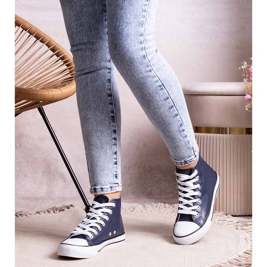 - Modelo: B262 Tênis de cano alto azul marinho em couro ecológico