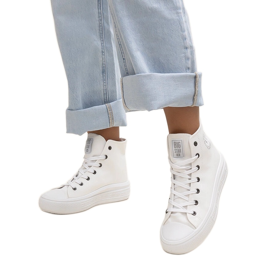White High Sneakers Big Star LL274A183 é uma proposta ideal para mulheres que desejam combinar uma aparência elegante com conforto todos os dias. Caracterizados pelo design moderno, esses tênis são distinguidos por um dedo redondo e um desempenho cuidadoso, o que garante durabilidade adequada e conforto de uso. Graças ao uso de uma sola de borracha, o calçado absorve perfeitamente a cada passo, e a fixação atada permite um ajuste individual à forma do pé.