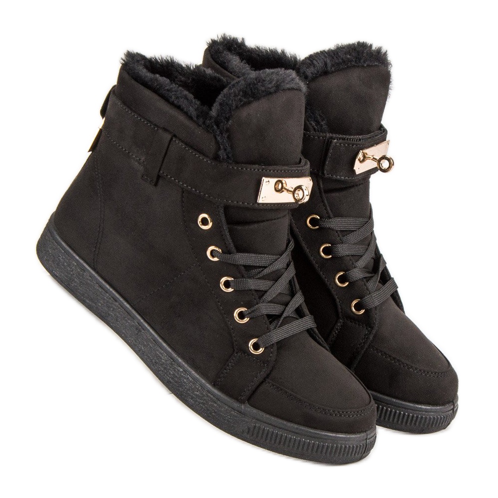 Os tênis de cano alto em camurça preta são obrigatórios no guarda-roupa de qualquer mulher, combinando design moderno e conforto de uso. Feitos de camurça ecológica de alta qualidade, esses tênis não só têm uma ótima aparência, mas também são ecologicamente corretos. As decorações douradas acrescentam elegância, tornando-as perfeitas tanto para o estilo do dia a dia quanto para ocasiões mais formais.