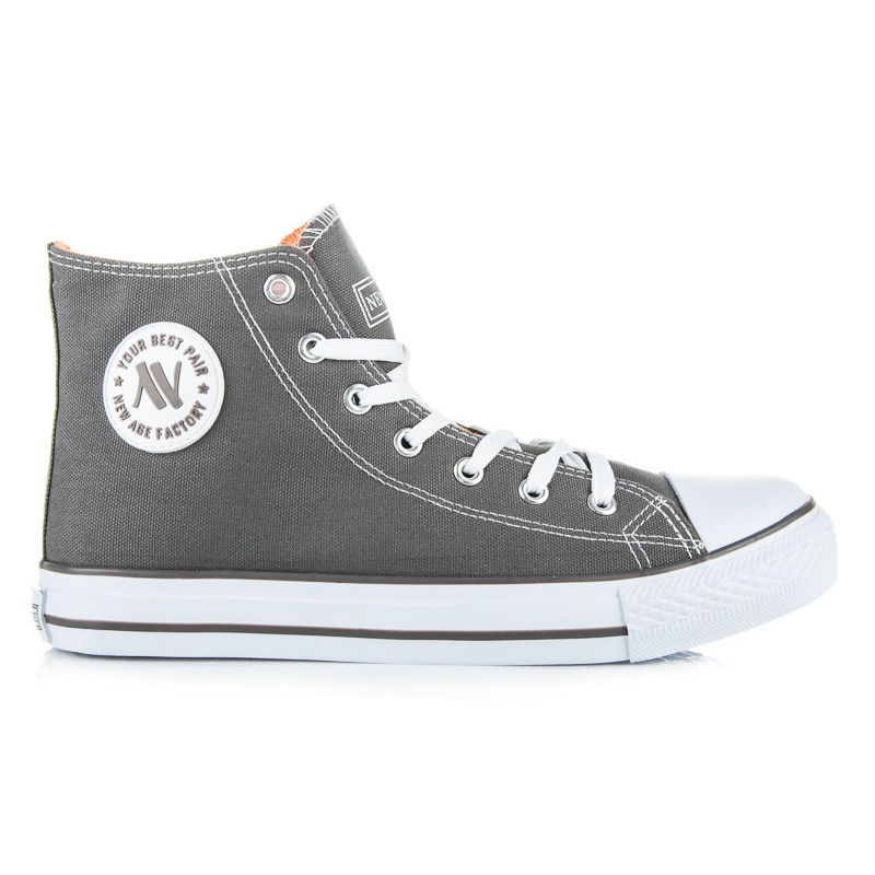 O tênis cano alto New Age na cor cinza é uma ótima opção para quem valoriza conforto e visual fashion. Estes sapatos estilosos são uma ótima alternativa aos modelos tradicionais que muitas vezes são clássicos demais. Graças à sua cor única, os ténis New Age cinzentos enquadram-se perfeitamente nas tendências, combinando perfeitamente tanto com os estilos do dia a dia como com os mais casuais.