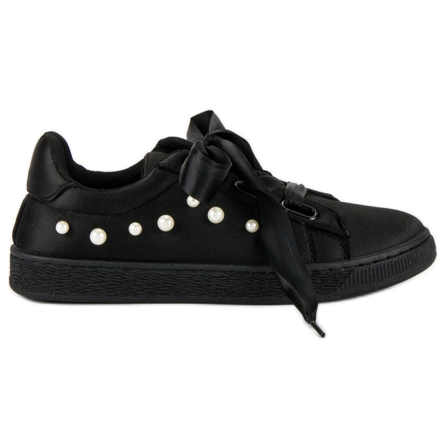Descubra um estilo único com tênis preto em cetim com pérolas! Estes sapatos femininos da moda são uma combinação de clássico e originalidade que farão você se destacar em qualquer estilo. O seu design invulgar, as contas decorativas e os laços elegantes fazem deles a escolha ideal para todos os dias e ocasiões especiais.