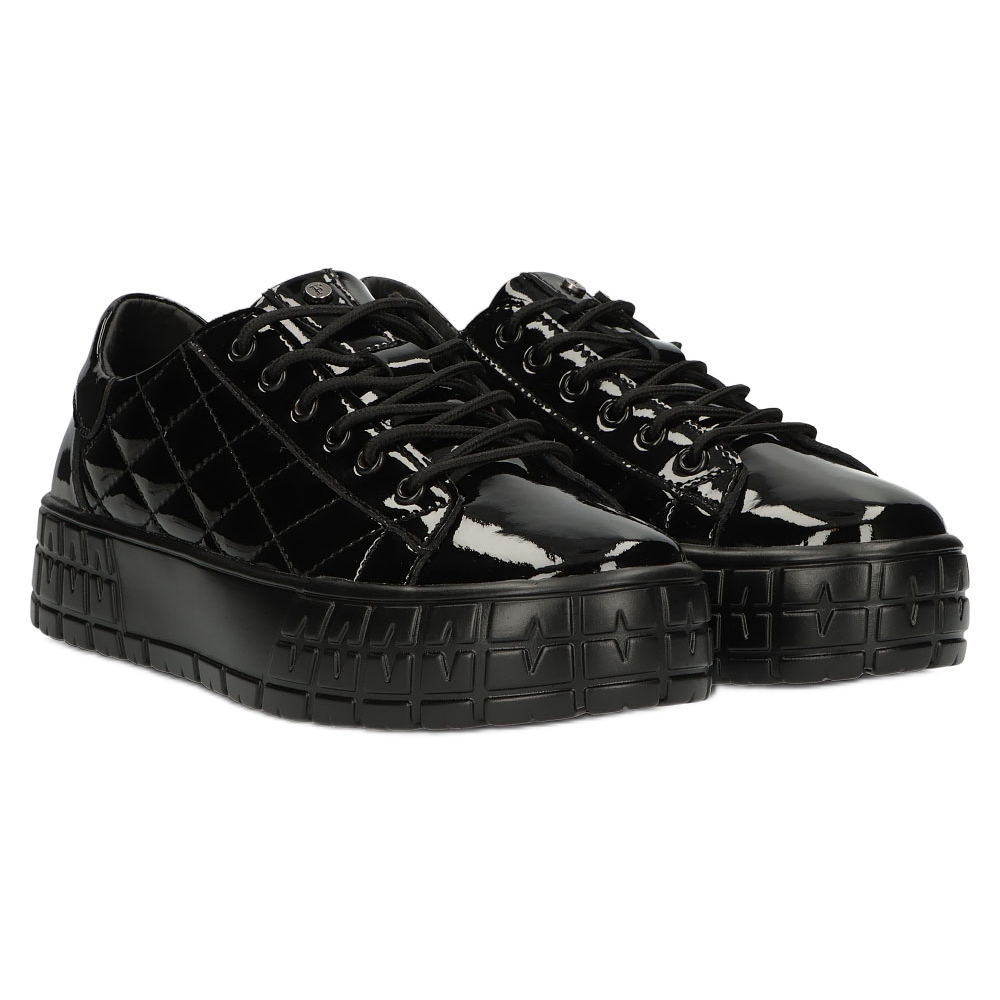 Filippo DP3932/22 BK - tênis de mulheres acolchoadas e envernizadas em preto elegante