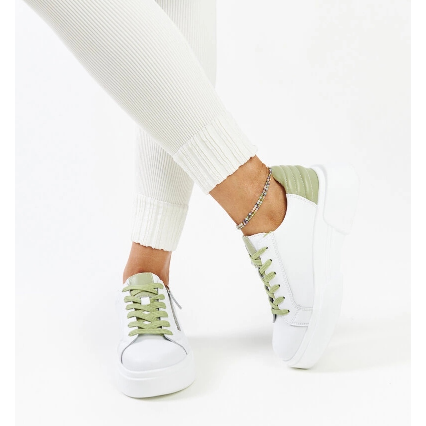 Os tênis de couro verde branco ATYAF são a escolha perfeita para mulheres que valorizam o conforto e o design da moda. Esses sapatos esportivos de uma marca respeitável outra marca combinam a elegância de couro natural branco com um pouco de frescura de detalhes em verde, o que os torna um elemento único de todo estilo de primavera e verão.