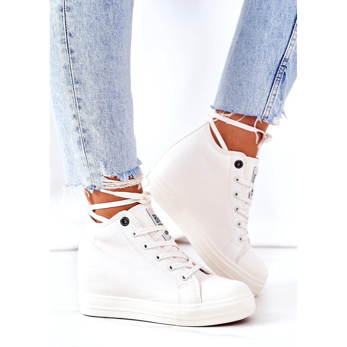 Descubra estilo e conforto únicos com os tênis de cunha de couro Big Star EE274128 na elegante cor branca. Estes sapatos femininos da moda são uma combinação perfeita de clássico e moderno, perfeitos tanto para estilos do dia a dia como para estilos mais elegantes.