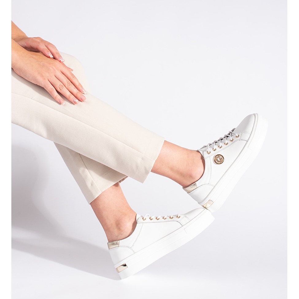 Os sapatos foram projetados para mulheres da moda que valorizam o conforto e a estética. O fecho de renda -up permite que você atenda às necessidades individuais, e a cor branca universal faz com que os tênis componham facilmente com várias estilizações. Uma vantagem adicional é o detalhe de ouro, que lhes dá um pouco de brilho.