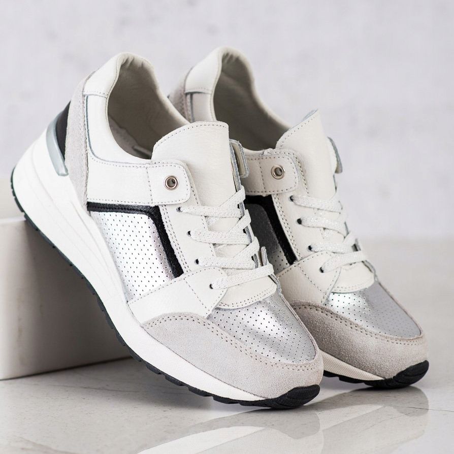 Detalhes: Goodin Tênis de couro branco e prata preto cinza