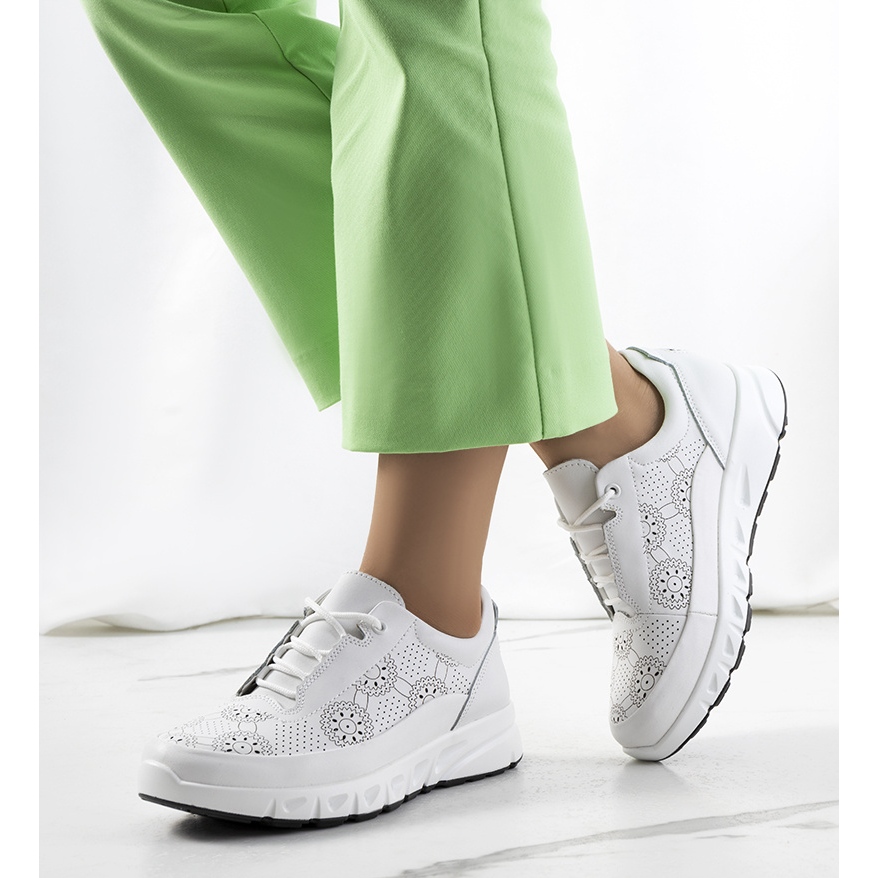 Os tênis de couro branco Kaypa são a escolha perfeita para mulheres que desejam aliar moda e conforto no estilo do dia a dia. Graças ao sutil padrão vazado, esses sapatos exalam feminilidade e leveza, o que os torna um complemento perfeito para looks de verão.