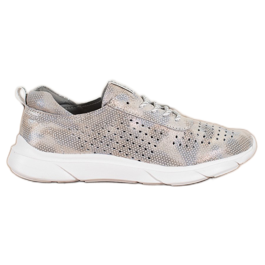 Detalhes: Goodin Tênis de Couro Brilhante bege cinza dourado