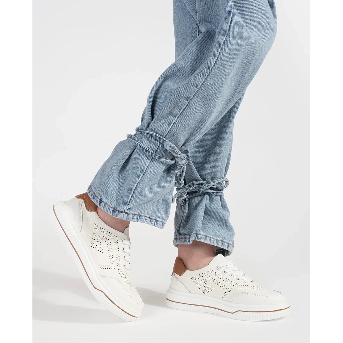 Detalhes: Goodin Tênis de couro de perfuração branca branco