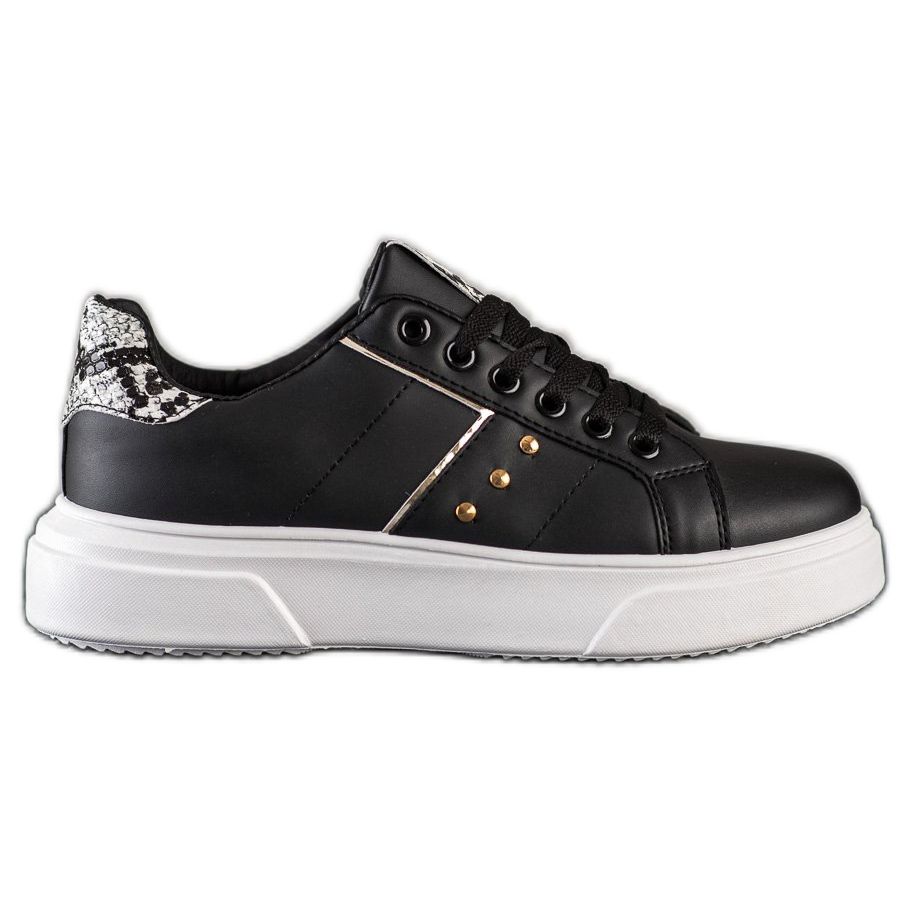 Os tênis SHELOVET confeccionados em couro ecológico na cor preta são a escolha perfeita para mulheres que valorizam conforto e um look fashion no dia a dia. Estes calçados esportivos combinam perfeitamente elegância e estilo casual, o que os torna um complemento perfeito tanto para o uso diário quanto para momentos mais ativos.