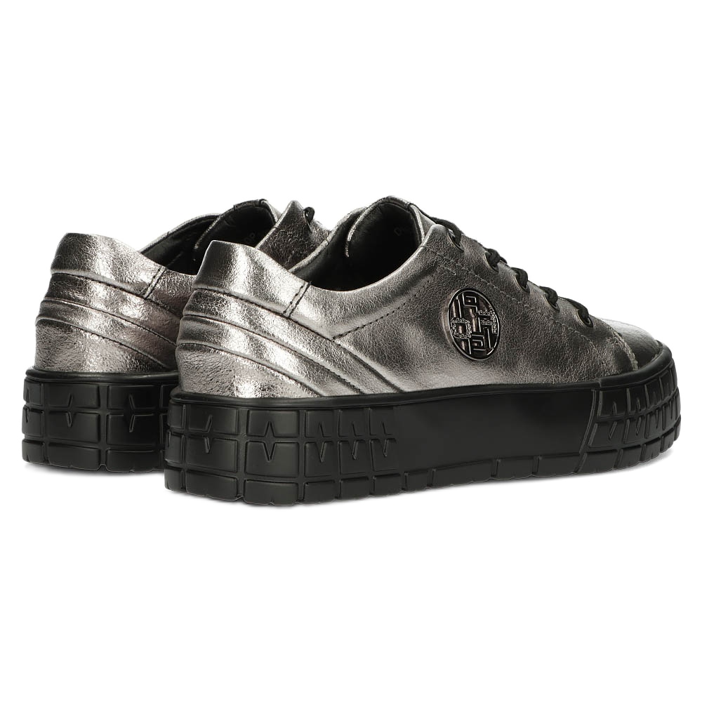Detalhes: Filippo Tênis de couro estiloso DP3528/22 GN Gun Metal castanho prata