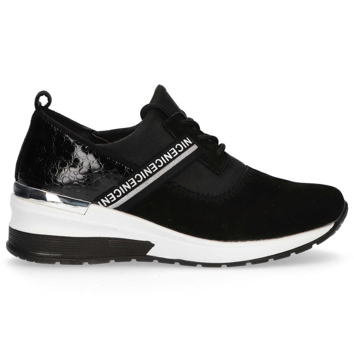 Tênis baixos com cunha oculta de 5 cm de altura enfatizam perfeitamente a figura, e a plataforma de 1 cm de altura acrescenta um charme sutil. Um interessante nariz redondo e um fecho com cadarço conferem-lhes um carácter desportivo, ao mesmo tempo que garantem estabilidade e conforto de uso. O produto pesa apenas 0,6 kg, sendo uma opção leve e prática para o uso diário.