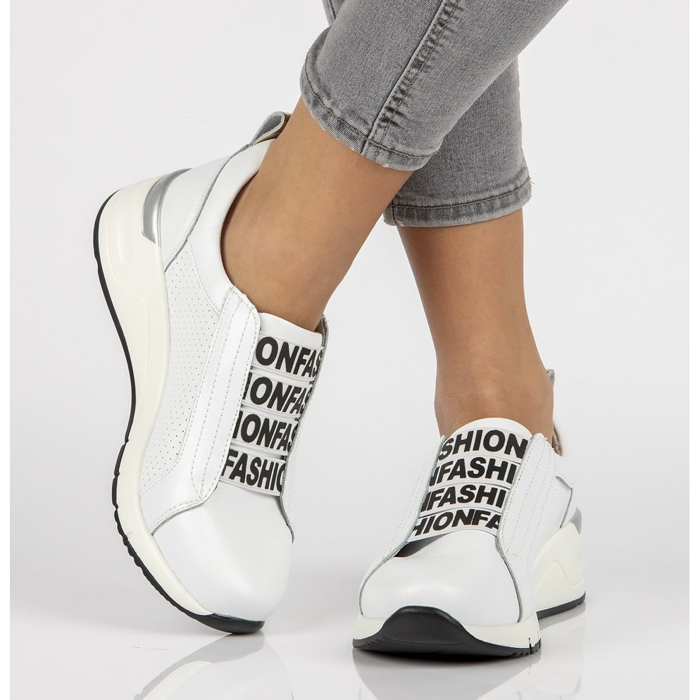A altura da plataforma de 1,5 cm e uma confortável cunha de 4 cm fazem com que este modelo alongue opticamente as pernas, acrescentando graça a qualquer figura. Os tênis brancos da Filippo são slip-on, o que os torna fáceis de calçar e tirar, e seu design minimalista facilita a combinação com uma variedade de estilos.