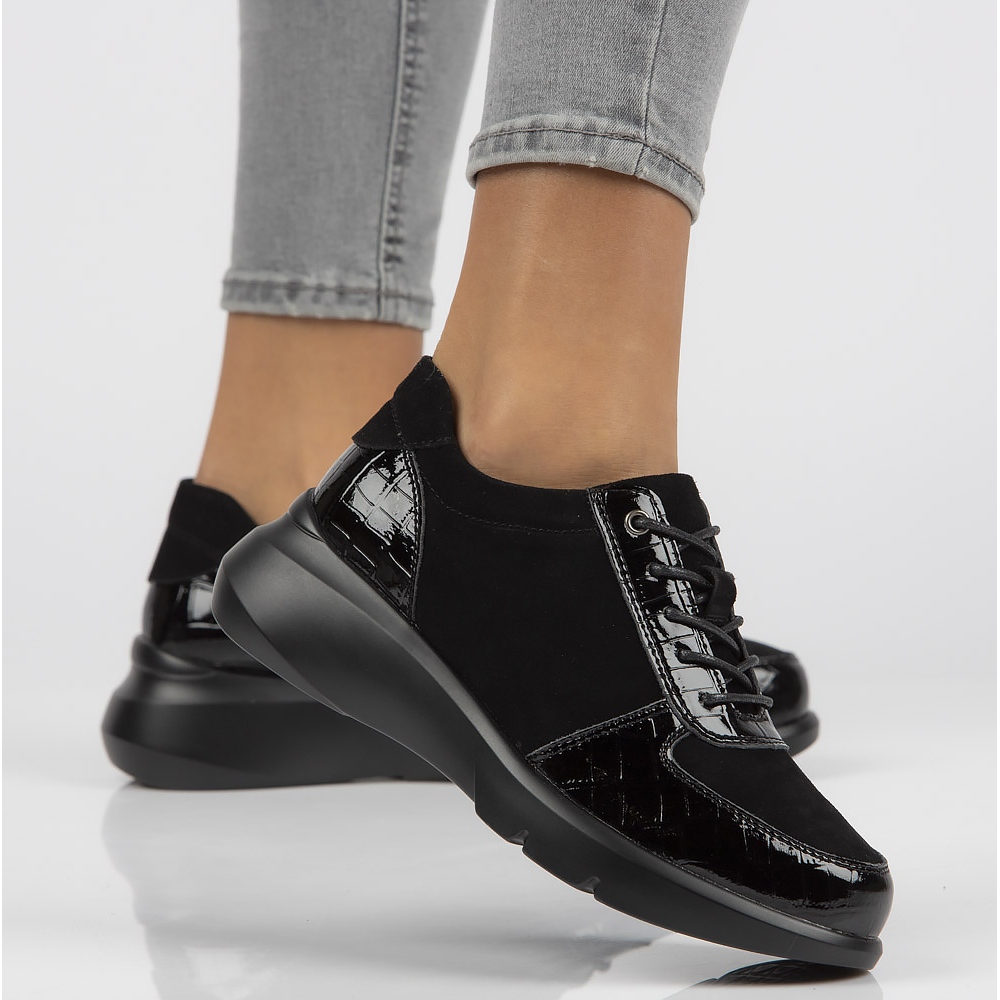 Os tênis caracterizam-se por uma altura superior baixa (6 cm), o que os torna extremamente confortáveis e perfeitos para o uso diário. A biqueira redonda e o fecho com cadarço garantem não só um look fashion, mas também um ajuste perfeito ao pé. Além disso, uma sola em material sintético com 2 cm de altura e uma cunha com 4,5 cm de altura conferem uma elegância subtil e alongam opticamente as pernas.