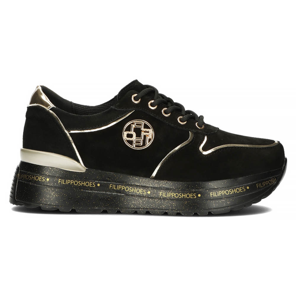 Filippo Tênis de couro Filippo DP3558 / 22 Bk preto dourado