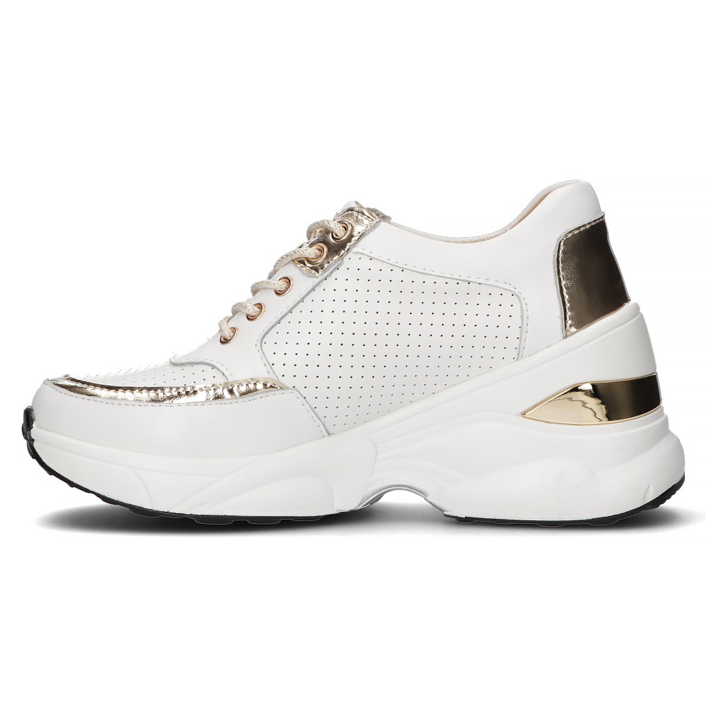 Detalhes: Tênis de couro Filippo DP3655 / 22 Wh branco dourado