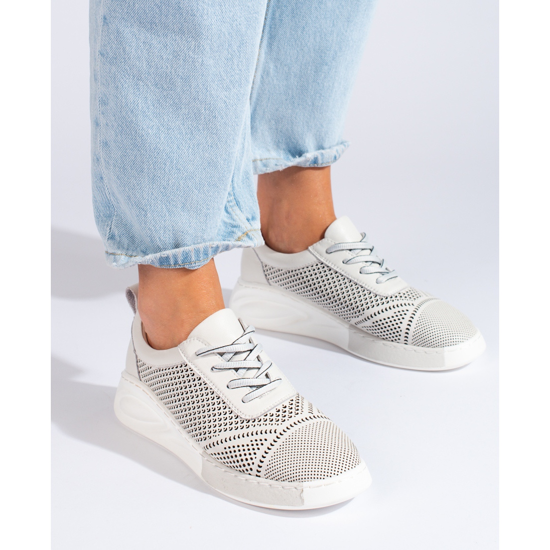 Este modelo enquadra-se no estilo casual, o que o torna a escolha ideal para qualquer estação - da primavera ao inverno. Graças ao padrão vazado, os sapatos conferem um aspecto leve e fresco e ao mesmo tempo permitem a livre circulação de ar, o que é útil nos dias mais quentes. Esses tênis também são equipados com um forro de couro que aumenta o conforto de uso.