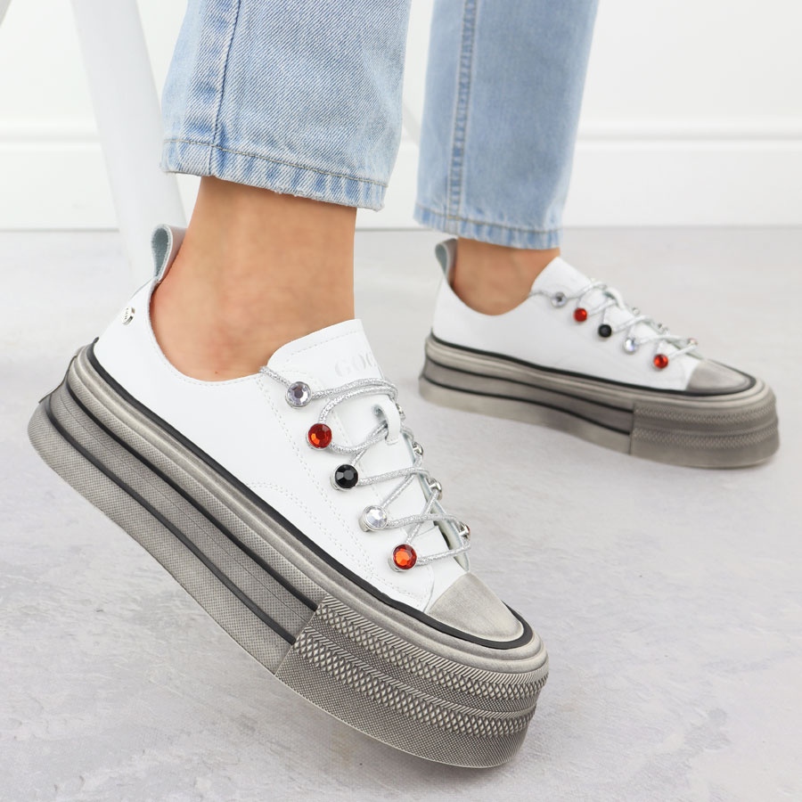 Os tênis de couro na plataforma White Goe NN2N4054 são a escolha perfeita para mulheres que valorizam o conforto combinadas com as últimas tendências da moda. Esses sapatos originais vêm de uma renomada coleção Goe, conhecida por seu excelente artesanato e atenção aos detalhes.