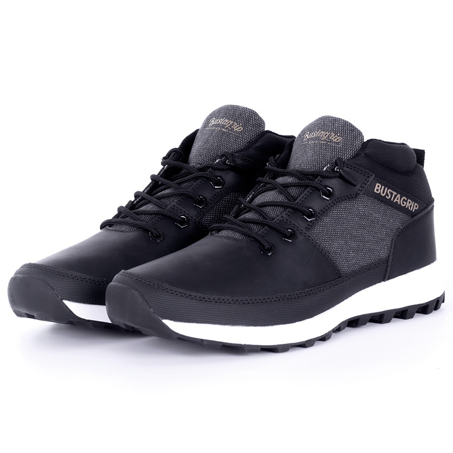 Tênis de couro masculino Trax Bustagrip - preto, atemporal e versátil. A combinação de couro natural com um forro confortável e isolado torna o modelo perfeito no outono e no inverno como todos os dias e confortáveis sapatos de tornozelo. Cor de cor preta, preta e corte simples, sem um padrão, combine estilizações casuais e saídas menos formais.