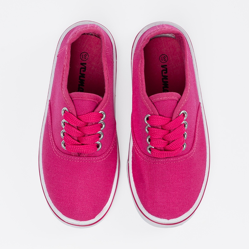 Detalhes: Tênis de crianças rosa com uma sola branca