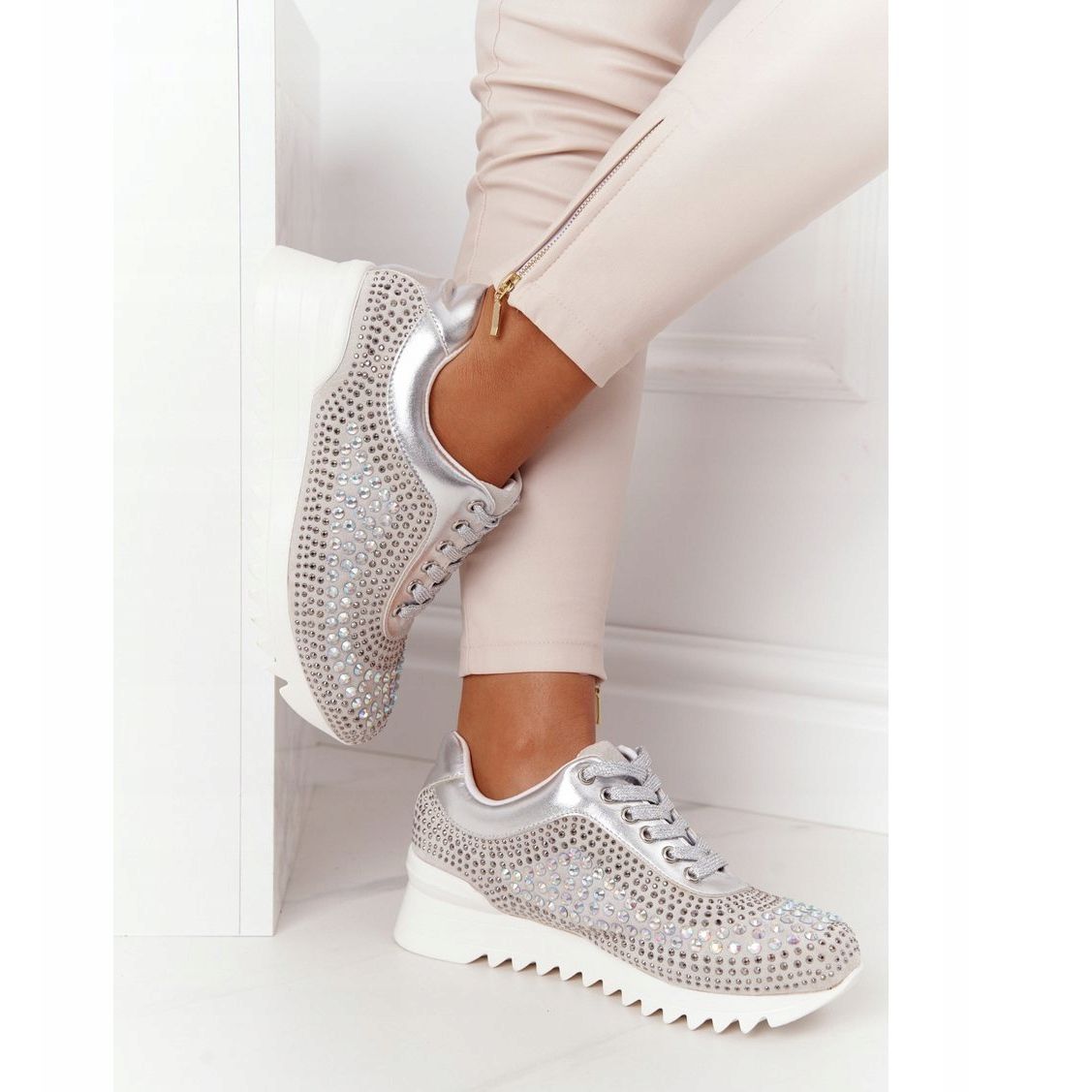 Detalhes: Tênis de cunha com lantejoulas Lu Boo prata