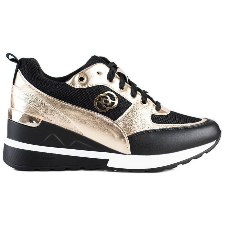 Conheça o Tênis Fashionable Wedge da marca Evento - a escolha perfeita para mulheres que valorizam estilo e conforto no dia a dia. Estes elegantes ténis pretos com detalhes dourados são uma combinação de design desportivo com um toque de moda, perfeitos tanto para o outono/inverno como para a primavera/verão.