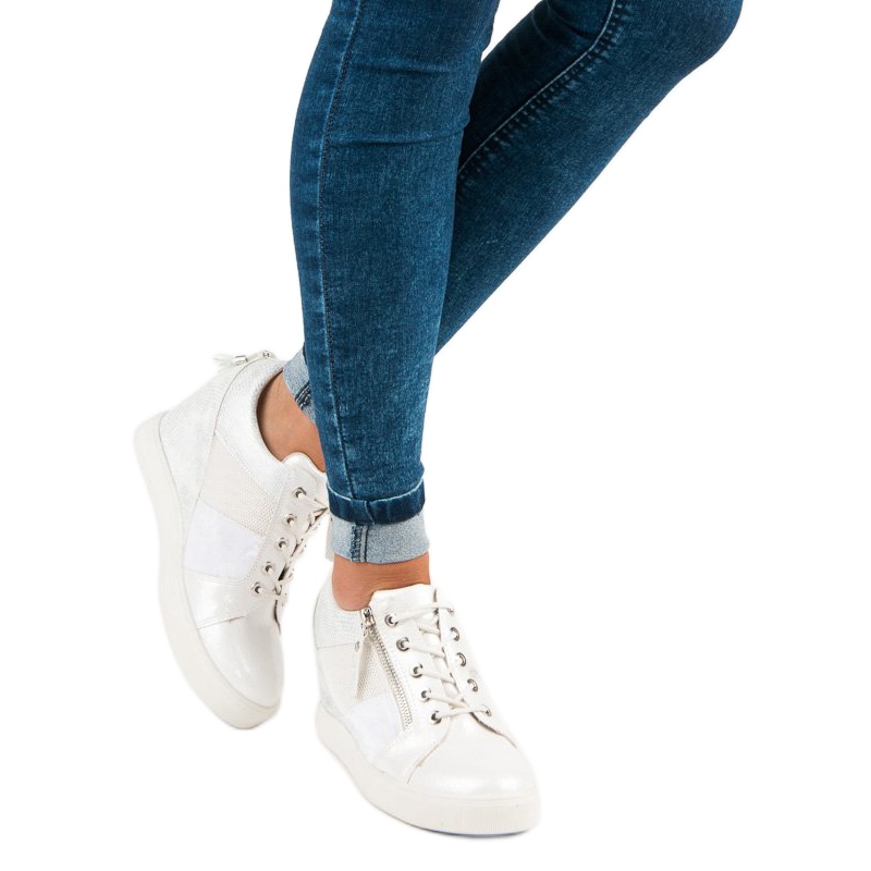 Os tênis de cunha da moda da marca Kylie são uma ótima opção para todos os amantes de estilo e conforto. Estes ténis brancos de corte alto combinam perfeitamente a elegância com um carácter desportivo, o que os torna perfeitos para muitas ocasiões.