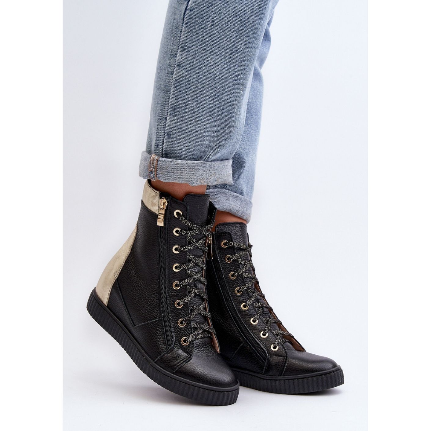 Descubra o estilo incrível e o conforto graças à pista feminina na cunha do Zazoo Black! Esses elegantes tênis negros são distinguidos não apenas pelo design moderno, mas também com alta qualidade de couro natural, que se traduz em durabilidade e conforto de desgaste.