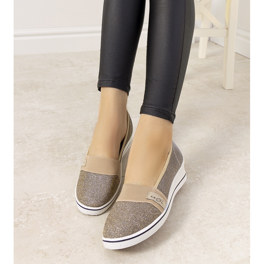 Descubra conforto e estilo com os tênis de cunha dourada Burris! Estes sapatos da moda são a escolha perfeita para os passeios do dia a dia, combinando elegância com conforto. O design slip-on torna-os rápidos e fáceis de colocar, o que é perfeito quando você está com pressa. Uma cunha baixa de 4 cm de altura e uma sola de borracha macia garantem estabilidade e amortecimento ao caminhar.