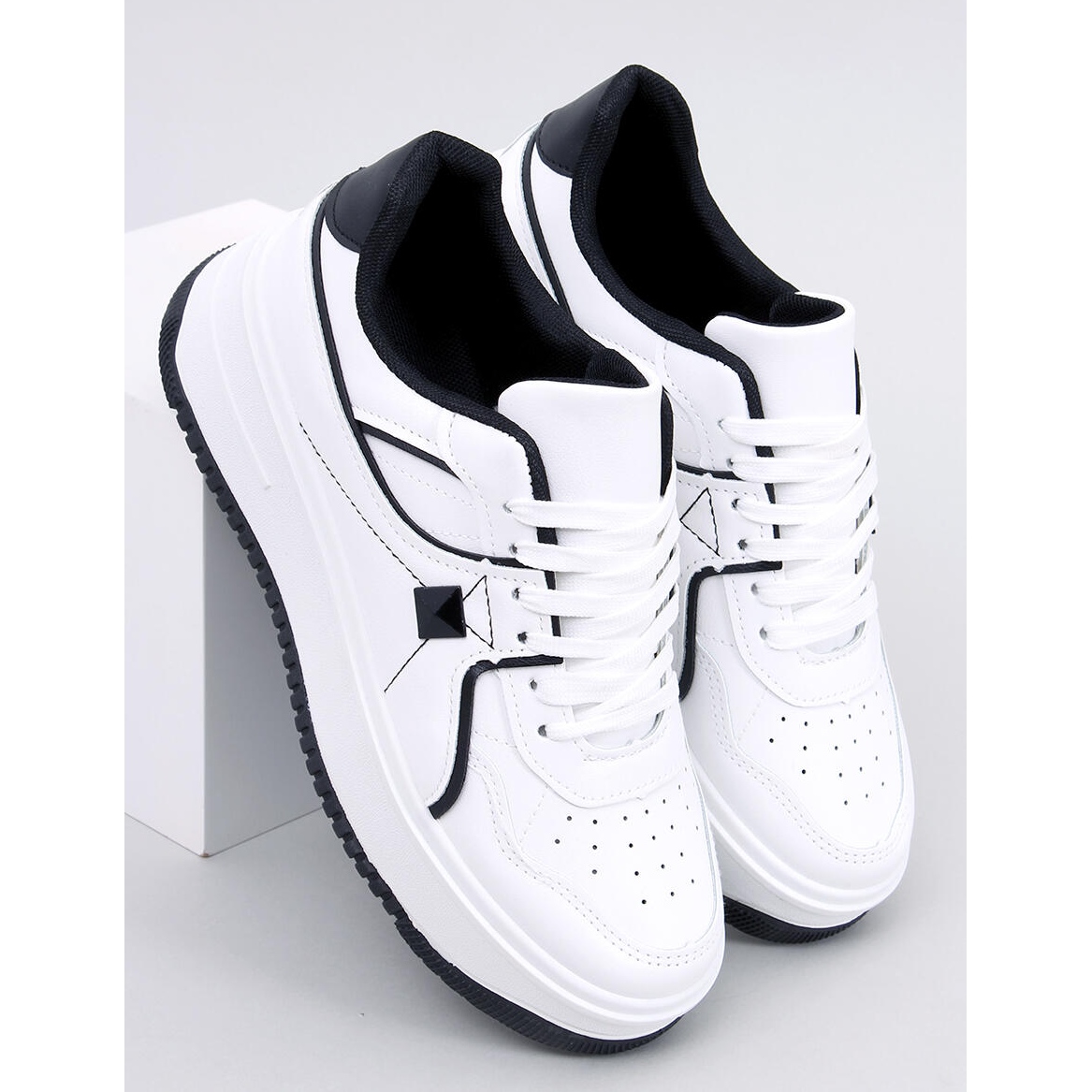 Este modelo distingue-se pelo seu design moderno - a combinação da pele ecológica branca com detalhes em preto faz com que estes ténis combinem com vários estilos. Quer vá passear, fazer compras ou encontrar amigos, estes sapatos vão complementar perfeitamente o seu look.