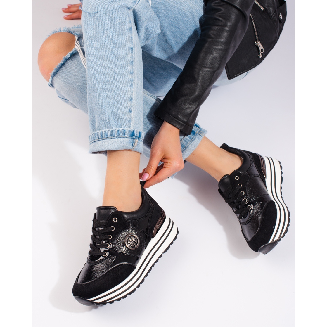 Descubra a elegância e o conforto do estilo do dia a dia com tênis femininos pretos de cunha da W. Potocka. Estes sapatos da moda combinam um carácter desportivo com um estilo moderno, o que os torna a escolha perfeita para qualquer ocasião - desde passeios pela cidade a encontros com amigos.