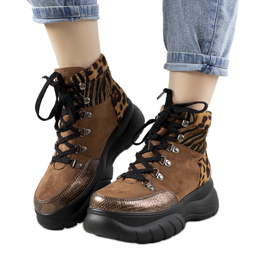 Descubra o charme dos tênis de inverno marrons com motivo animal da Cesaria, que são a escolha perfeita para o dia a dia. Estas botas estilosas são confeccionadas em couro camurça ecológico, o que garante um visual elegante e conforto de uso. As inserções com motivos animais conferem-lhes um carácter único, atraindo a atenção e destacando-se dos restantes modelos.