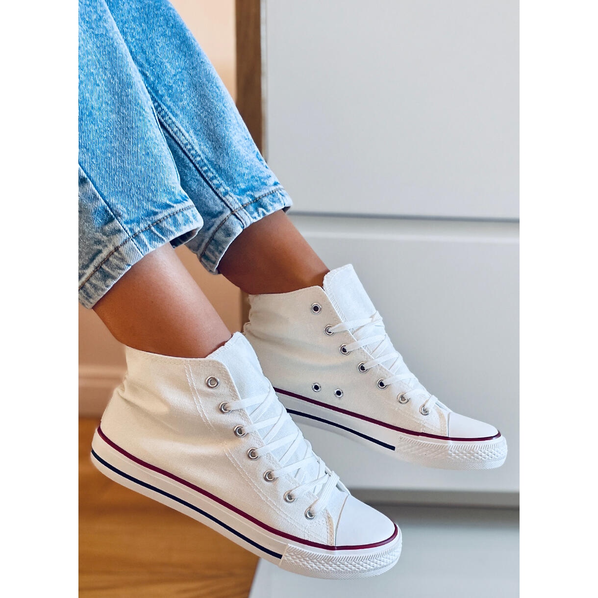 Apresentamos o tênis cano alto Jude White em lona na clássica cor branca, que deve estar no guarda-roupa de toda mulher. Estes sapatos atemporais combinam design moderno e conforto, tornando-os a escolha perfeita para o uso diário.