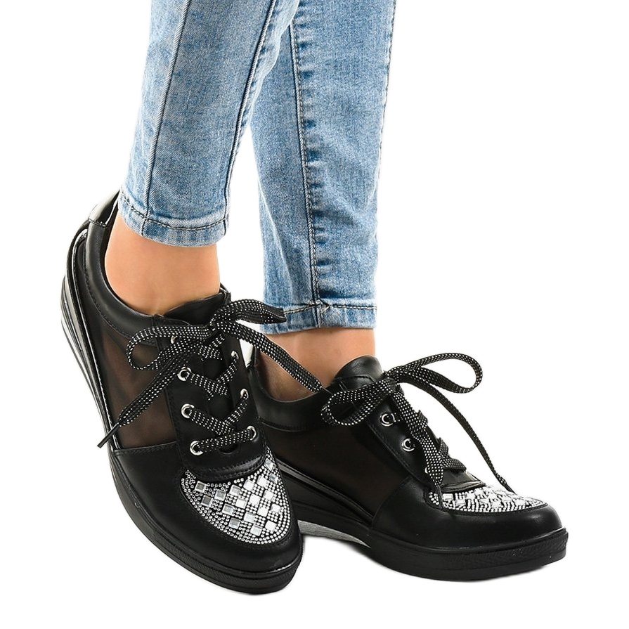 Inna marka Tênis de malha preta na cunha TL-29 preto