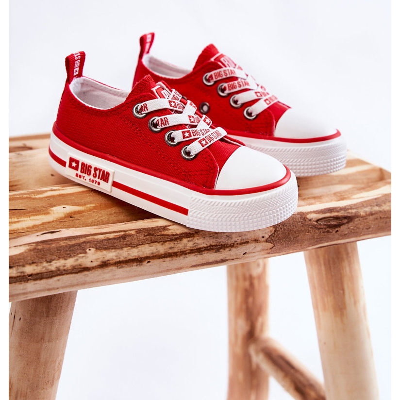 Big Star KK374071 Sneakers infantis - uma classe vermelha. Sapatos leves, deslizados -feitos de tecido durável, projetados para passeios divertidos e diários. A borracha, o nariz reforçado e uma sola não -deslizante fornecem proteção e boa adesão e os elásticos flexíveis que imitam os cadarços facilitam a instalação.