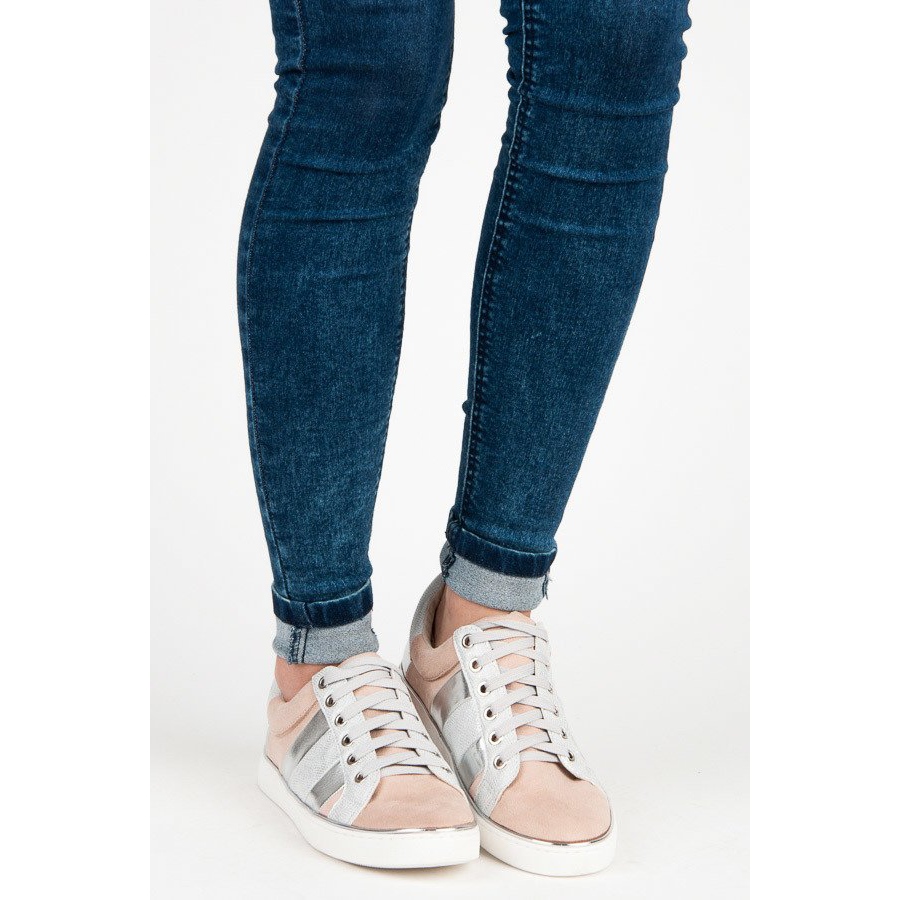 Detalhes: Kylie Tênis de moda amarrado rosa cinza